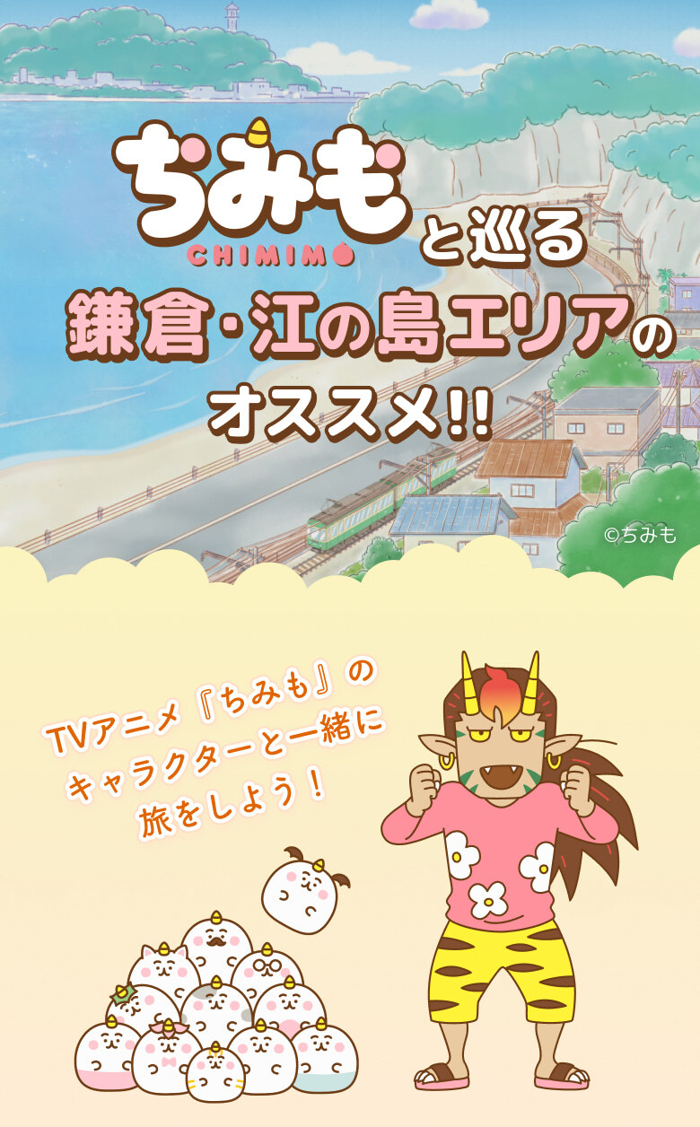 『ちみも』では、江の島、鎌倉地区をモデルにして、作品が作られました。本編には、モチーフとなったシーンがたくさん出てきます。アニメの世界の雰囲気を、江の島、鎌倉エリアの現地でも感じてみてください!