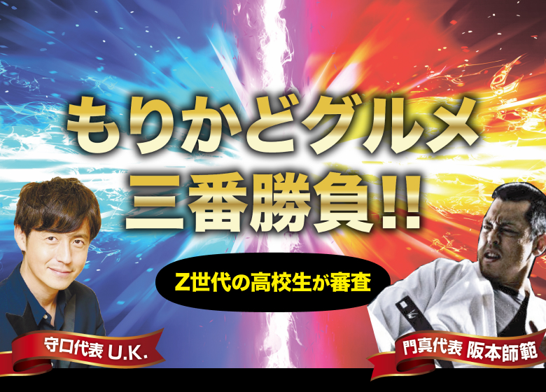 守口を拠点にラジオパーソナリティーやタレントとして活躍するU.K.。そして、門真を拠点に新極真会空手を広めている師範・阪本晋治。 わが街を愛する2人が自信を持って薦めるグルメ3番勝負!しかし、彼らおっさん達の味覚や感性は、未だに最先端なのかは疑わしい。ならば、時代の先を行くZ世代に審査してもらおうじゃないか!明誠高校北大阪SHIPの高校生審査員たちに協力してもらい「いざ実食!」